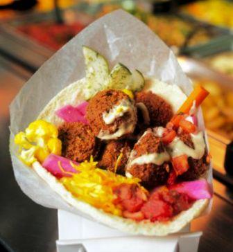 Soak the chick Peas in water for at least 8 hours. Grind the Chick Peas, Garlic, Onion, chili and coriander together, with a small amount of water, adding the falafel spices, baking soda, and salt. Leave set for at least one hour, then deep-fry in hot oil for about three-minutes, or until brown